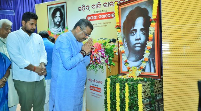 ଶହୀଦ ବାଜି ରାଉତଙ୍କ ରାଜ୍ୟସ୍ତରୀୟ ଜୟନ୍ତୀ ସମାରୋହରେ କେନ୍ଦ୍ରମନ୍ତ୍ରୀଙ୍କ ଉଦବୋଧନ