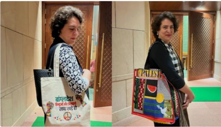 ସ୍ବତନ୍ତ୍ର ବାର୍ତ୍ତା ଥିବା ବ୍ୟାଗ ପକାଇ ସଂସଦକୁ ଆସିବା ସହ ନିଆରା ଢଙ୍ଗରେ ବଡ ପ୍ରସଙ୍ଗ ଉଠାଇଛନ୍ତି ପ୍ରିୟଙ୍କା ଗାନ୍ଧୀ । ପାଲେଷ୍ଟାଇନ ହେଉ କି ବାଂଲାଦେଶ, ଅଳ୍ପସଂଖ୍ୟକଙ୍କ ଉପରେ ହେଉଥିବା ନିର୍ଯାତନା ବିରୋଧରେ ବାର୍ତ୍ତା ଦେଉଥିବା ବ୍ୟାଗ ପକାଇ ସ୍ବର ଉଠାଇଛନ୍ତି । ଭୁଲ ହେଉ କି ଠିକ୍, ମାଇଲେଜ୍ ରାଜନୀତି ହେଉ କିମ୍ବା ରାଜନୀତିରେ ମାଷ୍ଟରଷ୍ଟ୍ରୋକ୍ ପ୍ରିୟଙ୍କାଙ୍କ ବ୍ୟାଗ ଚର୍ଚ୍ଚାର କେନ୍ଦ୍ର ପାଲଟିଛି ।