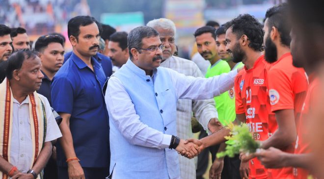 ଢେଙ୍କାନାଳ, ଡିସେମ୍ବର ୨୪ – ଢେଙ୍କାନାଳ ଜିଲ୍ଲା କ୍ରୀଡ଼ା ସଂଘ ପକ୍ଷରୁ ମଙ୍ଗଳବାର ଆୟୋଜିତ ‘ଷଷ୍ଠତମ ଜାତୀୟସ୍ତରୀୟ ଆମନ୍ତ୍ରଣୀୟ ଫୁଟବଲ ପ୍ରତିଯୋଗିତା’ର ଉଦଯାପନୀ ସମାରୋହରେ ଯୋଗଦେଇ ଜିଲ୍ଲାରେ ମୋଦୀ ସରକାରଙ୍କ ଖେଲୋ ଇଣ୍ଡିଆ ଓ ଫିଟ୍ ଇଣ୍ଡିଆ କାର୍ଯ୍ୟକ୍ରମକୁ ବ୍ୟାପକ କରିବା ପାଇଁ ଆହ୍ୱାନ କରିଛନ୍ତି କେନ୍ଦ୍ର ଶିକ୍ଷା ମନ୍ତ୍ରୀ ଧର୍ମେନ୍ଦ୍ର ପ୍ରଧାନ ।