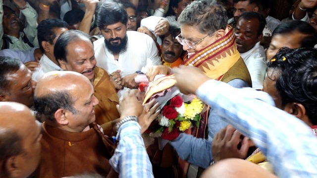 ରାଜ୍ୟ ସଭାପତି ଶ୍ରୀ ମନମୋହନ ସାମଲ ଉପଢୌକନ ପିନ୍ଧାଇ ଓ ପୁଷ୍ପଗୁଚ୍ଛ ପ୍ରଦାନ କରି ଶ୍ରୀ ପଣ୍ଡାଙ୍କୁ ସ୍ୱାଗତ ଜଣାଇଲେ