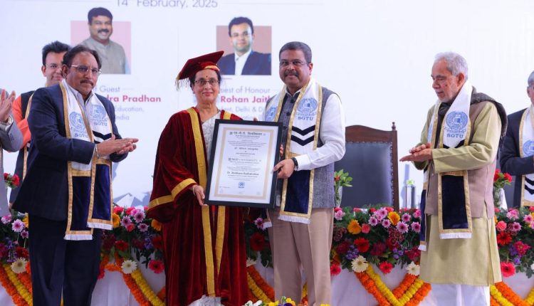 ଶ୍ରୀ ପ୍ରଧାନ କହିଛନ୍ତି ୨୦୪୭ ସୁଦ୍ଧା ବିକଶିତ ଭାରତର ଲକ୍ଷ୍ୟ ହାସଲ କରିବାକୁ ହେଲେ ଆମକୁ ଆମ ପିଲାମାନଙ୍କର ବ୍ୟକ୍ତିଗତ ବିକାଶର ରୋଡମ୍ୟାପ ଉପରେ ମଧ୍ୟ ଧ୍ୟାନ ଦେବାକୁ ପଡିବ । ଭାରତ ଶିଳ୍ପ ବିପ୍ଳବ ୪.୦ର ନେତୃତ୍ୱ ନେବା ଦରକାର ଏବଂ ଆମ ବିଶ୍ୱବିଦ୍ୟାଳୟଗୁଡ଼ିକ ଏହି ଦାୟିତ୍ୱ ନେବା ଉଚିତ୍ । ଭାରତର ଯୁବପିଢ଼ି ଉଚ୍ଚାଭିଳାଷୀ । ଆଜି ଆମେ ସର୍ଭିସ ଏବଂ ବିନିର୍ମାଣ କ୍ଷେତ୍ରରେ ନିଜର ପରିଚୟ ସୃଷ୍ଟି କରିଛୁ । ଆଗାମୀ ଦିନରେ ଆମକୁ ଡିପଟେକ୍ ସମେତ ନୂତନ ଜ୍ଞାନକୌଶଳ ଉପରେ ଆମର ହାତକୁ ମଜଭୂତ୍ କରିବାକୁ ହେବ । ଆମ ବିଶ୍ୱବିଦ୍ୟାଳୟ ଗୁଡ଼ିକ ବିଶ୍ୱ ସମସ୍ୟାର ସମାଧାନ ଅନ୍ୱେଷଣ କରିବା ସହ ନୂଆ ଟେକ୍ନୋଲୋଜି, ନବସୃଜନର ସଂସ୍କୃତି ଏବଂ ଓ୍ୱେଲଥ୍ କ୍ରିଏସନକୁ ପ୍ରୋତ୍ସାହିତ କରିବାକୁ ହେବ । ଆଗାମୀ ଦିନରେ ଭାରତ ବିଶ୍ୱ କଲ୍ୟାଣର ଦାୟିତ୍ୱ ନେବ । ଜାତୀୟ ଶିକ୍ଷା ନୀତିରେ ଏଥିପାଇଁ ରୋଡମ୍ୟାପ୍ ପ୍ରସ୍ତୁତ କରାଯାଇଛି ଏବଂ ଏସଜିଟି ଭଳି ବିଶ୍ୱବିଦ୍ୟାଳୟ ଏହାର ସଫଳ ପ୍ରୟୋଗଶାଳା ହେବ ।