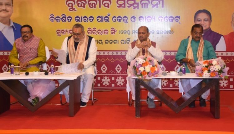 ସେହିପରି ବିକଶିତ ଭାରତ ପାଇଁ ଉଭୟ କେନ୍ଦ୍ର ଓ ରାଜ୍ୟ ବଜେଟ ସଂପର୍କରେ ଏକ ବୁଦ୍ଧିଜୀବି ସମ୍ମିଳନୀ ଆୟୋଜନ ହୋଇଥିଲା । ରାଜ୍ୟର ବିଭିନ୍ନ ଶ୍ରେଣୀ ଓ ବର୍ଗର ପ୍ରତିନିଧିମାନେ ଏହି ବୁଦ୍ଧିଜୀବୀ ସମ୍ମିଳନୀରେ ଯୋଗ ଦେଇ ସେମାନଙ୍କ ସୁଚିନ୍ତିତ ମତାମତ ଦେବା ସହିତ ଉଭୟ କେନ୍ଦ୍ର ଓ ରାଜ୍ୟ ବଜେଟର ଉପାଦେୟତାକୁ ହୃଦୟଙ୍ଗମ କରି ବଜେଟକୁ ପ୍ରଶଂସା କରିଥିଲେ । ଏହି ଅବସରରେ କେନ୍ଦ୍ର ବୟନଶିଳ୍ପ ମନ୍ତ୍ରୀ ଶ୍ରୀ ଗିରିରାଜ ସିଂହ, ରାଜସ୍ୱ ମନ୍ତ୍ରୀ ଶ୍ରୀ ସୁରେଶ ପୂଜାରୀ, ରାଜ୍ୟ ସଭାପତି ଶ୍ରୀମନମୋହନ ସାମଲ ଏବଂ ପୂର୍ବତନ ରାଜ୍ୟ ସଭାପତି ଶ୍ରୀ ସମୀର ମହାନ୍ତି ପ୍ରମୁଖ ଭାଗ ନେଇଥିଲେ ।