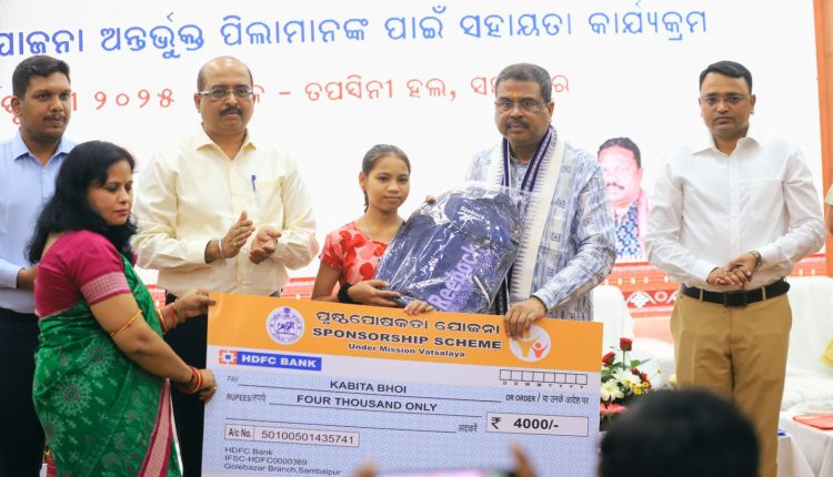 ସମ୍ବଲପୁର, ଫେବୃୟାରୀ ୨୪ -କେନ୍ଦ୍ର ଶିକ୍ଷା ମନ୍ରୀଓ ଧର୍ମେନ୍ଦ୍ର ପ୍ରଧାନ ସୋମବାର ସମ୍ବଲପୁର ଠାରେ ‘ମିଶନ ବାତ୍ସଲ୍ୟ ଯୋଜନା’ ଅନ୍ତର୍ଭୁକ୍ତ ଅନାଥ ଓ ଅନଗ୍ରସର ପିଲାମାନଙ୍କ ସହାୟତା ପାଇଁ କାର୍ଯ୍ୟକ୍ରମର ଶୁଭାରମ୍ଭ କରିବା ସହ ସହାୟତା ରାଶି ବିତରଣ କରିଛନ୍ତି । ଏହ ଯୋଜନାରେ ଯୋଜନାରେ ଜିଲ୍ଲାର ୨୬୬ ଜଣ ପିଲାଙ୍କୁ ମାସିକ ୪ ହଜାର ଟଙ୍କା ଆର୍ଥିକ ସହାୟତା ପ୍ରଦାନ କରିବା ସହ ସମ୍ବଲପୁର ଜିଲ୍ଲାରେ ଥିବା ଅନାଥ ପିଲାଙ୍କ ଯତ୍ନ ନେବାକୁ ସେ ପରାମର୍ଶ ଦେଇଛନ୍ତି ।