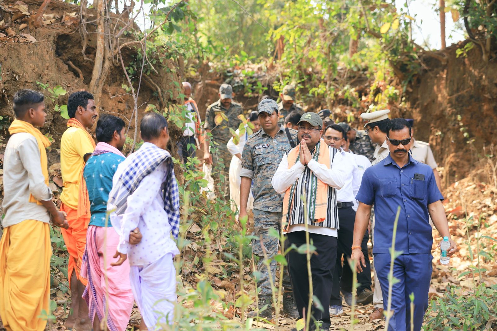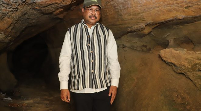 କେନ୍ଦ୍ରମନ୍ତ୍ରୀ ଶ୍ରୀ ପ୍ରଧାନ ସ୍ଥାନୀୟ ଅଧିବାସୀ ଓ ଦଳର କାର୍ଯ୍ୟକର୍ତ୍ତାଙ୍କ ସହ ପାହାଡିଆ ଏବଂ ପଥୁରିଆ ଜଙ୍ଗଲ ରାସ୍ତାରେ ଚାଲି ଚାଲି ଭୀମମଣ୍ଡଳୀରେ ଥିବା ପ୍ରସ୍ତର ଯୁଗର ଗୁମ୍ଫା ଓ ଶିଳାଲେଖ ଦେଖିଥିଲେ । ସ୍ଥାନୀୟ ଅଧିବାସୀଙ୍କ ସହ ମିଶିବା ସହ କଥା ହୋଇଥିଲେ । ସେହି ଅଞ୍ଚଳରେ ଥିବା ପୀଠ ଓ ମନ୍ଦିର ଦର୍ଶନ କରିବା ସହ ସାଧାରଣ ସଭାକୁ ମଧ୍ୟ ସମ୍ବୋଧିତ କରିଥିଲେ । ଭାରତୀୟ ପ୍ରତ୍ନତତ୍ତ୍ୱ ସର୍ବେକ୍ଷଣ ସଂସ୍ଥା (ଏଏସଆଇ)ର ଅଧିକାରୀଙ୍କ ସହ ଏହି ଐତିହାସିକ ସ୍ଥାନର ଉତ୍ପତ୍ତି, ଐତିହ୍ୟ, ଇତିହାସ ଓ ମାନବ ସଭ୍ୟତାର ପ୍ରାମାଣିକ ତଥ୍ୟ ଉପରେ ଆଲୋଚନା କରିଥିଲେ ।