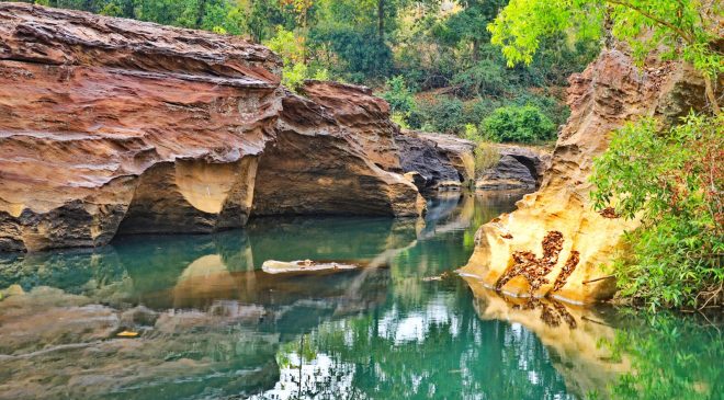 • ପାହାଡିଆ ଓ ପଥୁରିଆ ଜଙ୍ଗଲ ରାସ୍ତାରେ ଚାଲି ଚାଲି ଭୀମମଣ୍ଡଳୀରେ ଥିବା ପ୍ରସ୍ତର ଯୁଗର ଗୁମ୍ଫା ଓ ଶିଳାଲେଖ ଦେଖିଲେ