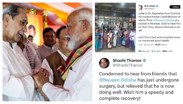 ସେହିପରି ତାମିଲନାଡୁ ମୁଖ୍ୟମନ୍ତ୍ରୀ ଏମ୍ କେ ଷ୍ଟାଲିନ୍ ଏବଂ କଂଗ୍ରେସ ସାଂସଦ ଶଶି ଥରୁର ମଧ୍ୟ ନବୀନଙ୍କ ଦ୍ରୁତ ଆରୋଗ୍ୟ କାମନା କରିଥିଲେ। ଷ୍ଟାଲିନ୍ ସୋସିଆଲ ମିଡ଼ିଆ ପ୍ଲାଟଫର୍ମରେ