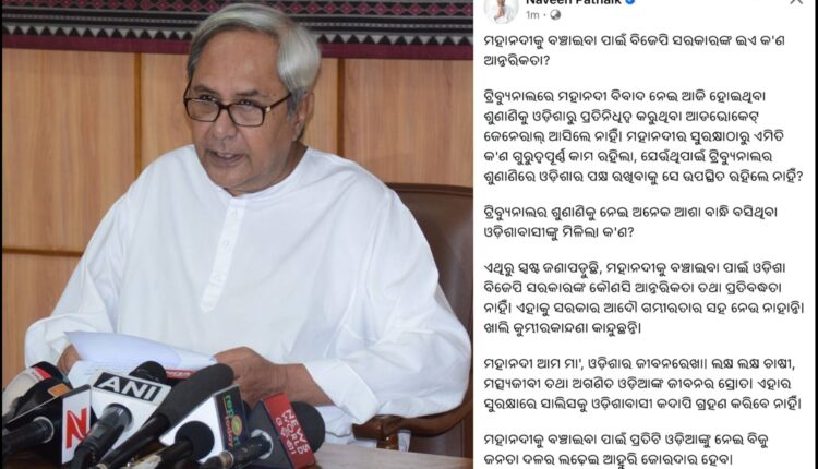 ମହାନଦୀ ଜଳ ବିବାଦ; “ବିଜେପି ସରକାରଙ୍କ ଇଏ କ’ଣ ଆନ୍ତରିକତା?” ବୋଲି ପ୍ରଶ୍ନ କଲେ ନବୀନ…