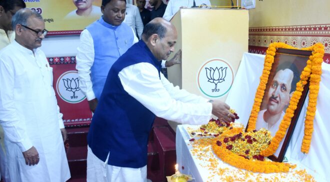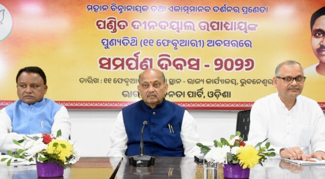  ରାଷ୍ଟ୍ରୀୟ ଚିନ୍ତାଧାରାରେ ଦେଶ, ଜାତୀୟତାବାଦ, ଦେଶଭକ୍ତି ଏବଂ ଶୃଙ୍ଖଳିତ ଆତ୍ମୀୟତା ଦୃଢତାର ଜଣେ ପ୍ରତୀକ ଥିଲେ ଦୀନଦୟାଲ ଜୀ: ରାଜ୍ୟ ସଭାପତି ମନମୋହନ ସାମଲ