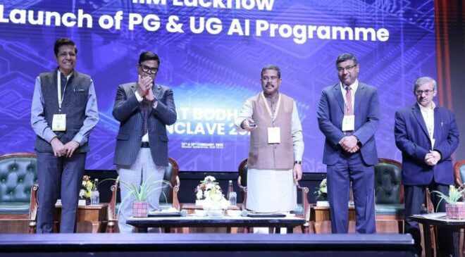ନୂଆଦିଲ୍ଲୀ, ଫେବୃୟାରୀ ୧୨- କେନ୍ଦ୍ର ଶିକ୍ଷା ମନ୍ତ୍ରୀ ଶ୍ରୀ ଧର୍ମେନ୍ଦ୍ର ପ୍ରଧାନ ନୂଆଦିଲ୍ଲୀ ଠାରେ ଆୟୋଜିତ ‘ଭାରତ ବୋଧନ ଏଆଇ କନକ୍ଲେଭ’ରେ ଯୋଗଦେଇ ଶିକ୍ଷା ଓ ପ୍ରଯୁକ୍ତିବିଦ୍ୟା କ୍ଷେତ୍ରରେ ଭାରତର ସାମର୍ଥ୍ୟ ଉପରେ ଆଲୋକପାତ କରିଛନ୍ତି। ଭାରତକୁ ଏକ ‘ଏଆଇ ଲିଡର’ ଦେଶ ଭାବେ ଗଢିତୋଳିବା ପାଇଁ ପ୍ରଧାନମନ୍ତ୍ରୀଙ୍କ ସଂକଳ୍ପକୁ ଦୋହରାଇ ସେ ଶିକ୍ଷା କ୍ଷେତ୍ରରେ ଆର୍ଟିଫିସିଆଲ୍ ଇଣ୍ଟେଲିଜେନ୍ସର ବ୍ୟାପକ ବ୍ୟବହାର ଉପରେ ଗୁରୁତ୍ୱାରୋପ କରିଛନ୍ତି।