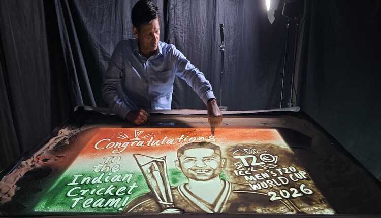 ପୁରୀ: ୨୦୨୬ ଟି୨୦ ବିଶ୍ୱକପରେ ଭାରତୀୟ ଦଳର ବିଜୟ ଉପଲକ୍ଷେ ପ୍ରସିଦ୍ଧ ବାଲୁକା ଶିଳ୍ପୀ ମାନସ କୁମାର ସାହୁ ପୁରୀରେ ଥିବା ତାଙ୍କ ଷ୍ଟୁଡିଓରେ ଭାରତୀୟ କ୍ରିକେଟ ଦଳକୁ ଅଭିନନ୍ଦନ ଜଣାଇବା ପାଇଁ ଏକ ସ୍ୱତନ୍ତ୍ର ବାଲୁକା ଆନିମେସନ ପ୍ରସ୍ତୁତ କରିଛନ୍ତି ।
