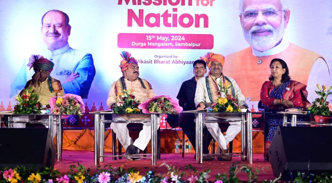 ଆଜି ଏହି ମର୍ମ ରେ ସ୍ଥାନୀୟ କ୍ଷେତରାଜପୁର ର ଦୁର୍ଗାମାଙ୍ଗଲମ ମଣ୍ଡପ ଠାରେ ବିକଶିତ ଭାରତ ଅଭିଯାନ ପକ୍ଷରୁ ମିଶନ୍ ଫର୍ ନେସନ୍ କାର୍ଯ୍ୟକ୍ରମ ଅନୁଷ୍ଠିତ ହୋଇ ଯାଇଛି । ଏହି କାର୍ଯ୍ୟକ୍ରମ ରେ ଲୋକସଭା ବାଚସ୍ପତି ଓମ ବିର୍ଲା ସାମିଲ ହୋଇଥିଲେ । ବିଜୟ କେଡିଆ ଙ୍କ ସଭାପତିତ୍ୱରେ ଆୟୋଜିତ କାର୍ଯ୍ୟକ୍ରମ ରେ ମ୍ରୁଦଲା ଠାକୁର ପ୍ରଧାନ ସମ୍ବଲପୁର କୁ ଦେଶର ଏକ ପ୍ରମୁଖ ସହର ଭାବେ ବିକଶିତ କରିବା ପାଇଁ ସମର୍ଥନ ଦେବାକୁ ଅନୁରୋଧ କରିଥିଲେ । ମୋଦି ତ୍ରୁତୀୟ ଥର ପ୍ରଧାନମନ୍ତ୍ରୀ ହେଲେ ବିକଶିତ ଭାରତ ଏବଂ ବିକଶିତ ଓଡ଼ିଶା ଗଠନ ହେବ ବୋଲି କହିଥିଲେ ।